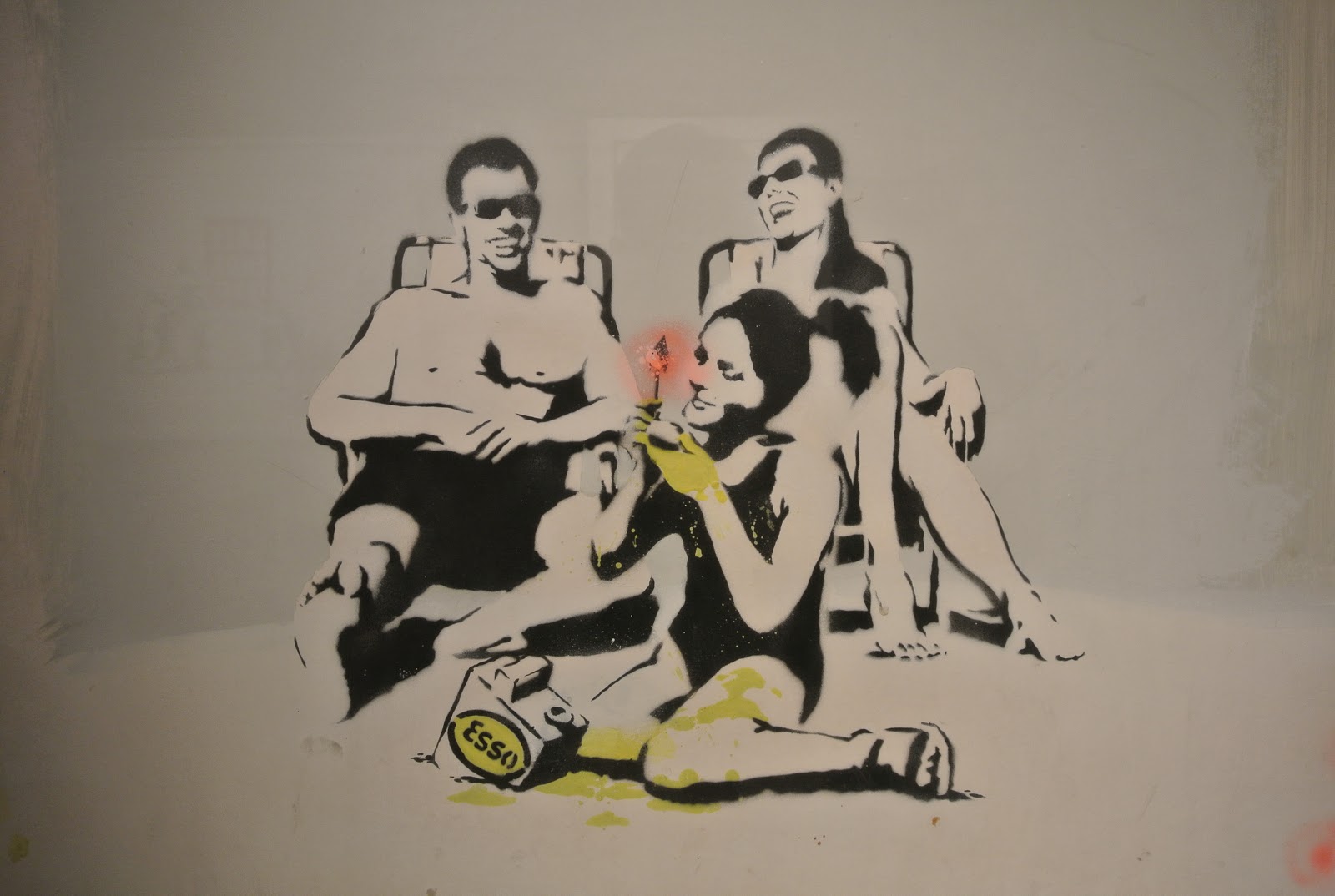 I've never been a big fan of protest related art or even Banksy for that matter, but I do respect his deep understanding about the art world and his sarcastic responses to it. You can see it from his work that he is very aware about his surroundings, and he does a great job in communicating his ideas to a mass audience. He has definitely forged a strong path into the world of high art, but his stance is still with the world of low brow art. It seems like he is always in tune with the social issues around the world, and he tries to respond in ways that are not too complex, but very cheeky.